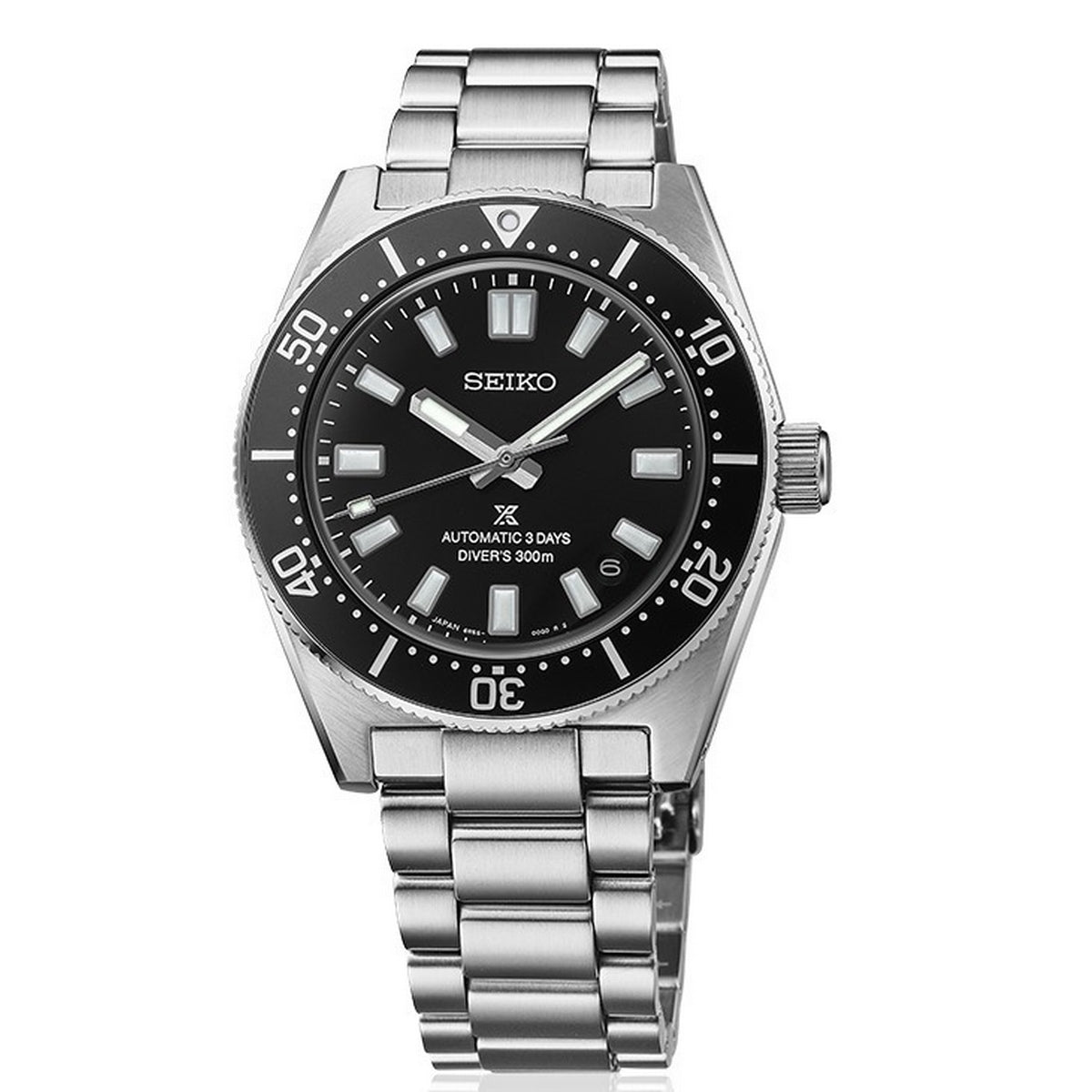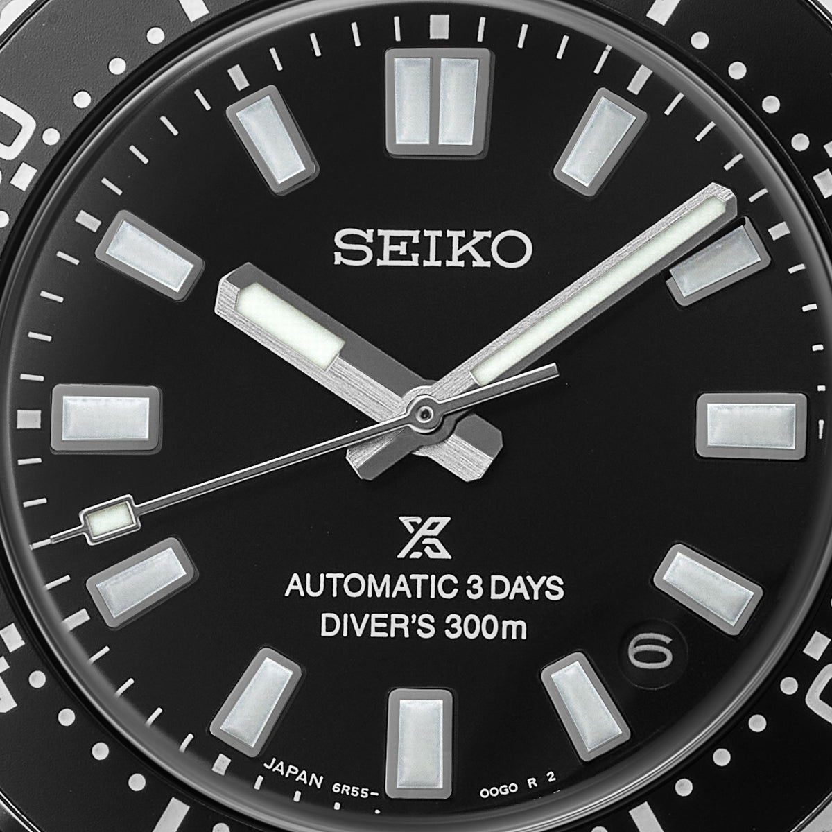 This piece is a re-interpretation of Japan's - and Seiko�s - first ever Diver's watch, released in 1965.The original automatic 1965 Diver's watch marked the beginning of Seiko's watchmaking pursuit for diving reliability, safety, and professional specifications. From 1966-1969, this watch was worn by members of the Japanese Antarctic Research Expedition on trips to the South Pole, proving its durability in challenging environments.For this latest redux, the design is updated with a more sophisticated specification, heightened water resistance, and improved power reserve. Built in a 40mm stainless steel case, the sapphire crystal glass is surrounded by a deep �cove� black bezel and matching dial. In line with professional ISO Diving specification, the hands and indices are coated in glow-in-the-dark Lumibrite whilst its upright date calendar in a 4.5 o'clock position also add to its legibility. For extra comfort and wearability, the bracelet has updated short pitch links and a shorter buckle. It is also slimmer than previous models, with a 13mm depth.The in-house built 6R55 automatic movement is accurate to -15/+25 seconds per day with a 72-hour power reserve and 300m water resistance.Prospex is a combination of the words 'Professional' and 'Specifications.' Seiko Prospex timepieces are designed to be practical, reliable and durable; to meet the high standards required in extreme environments for sports lovers and adventure seekers alike.